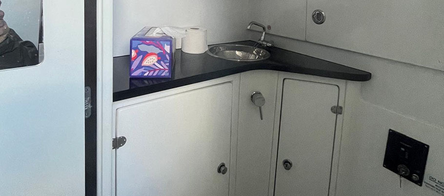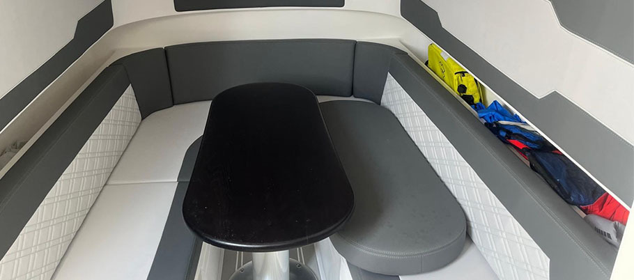 Spacious cabin with an enclosed head, and a U-shape seating and table that can be converted into a day bed.